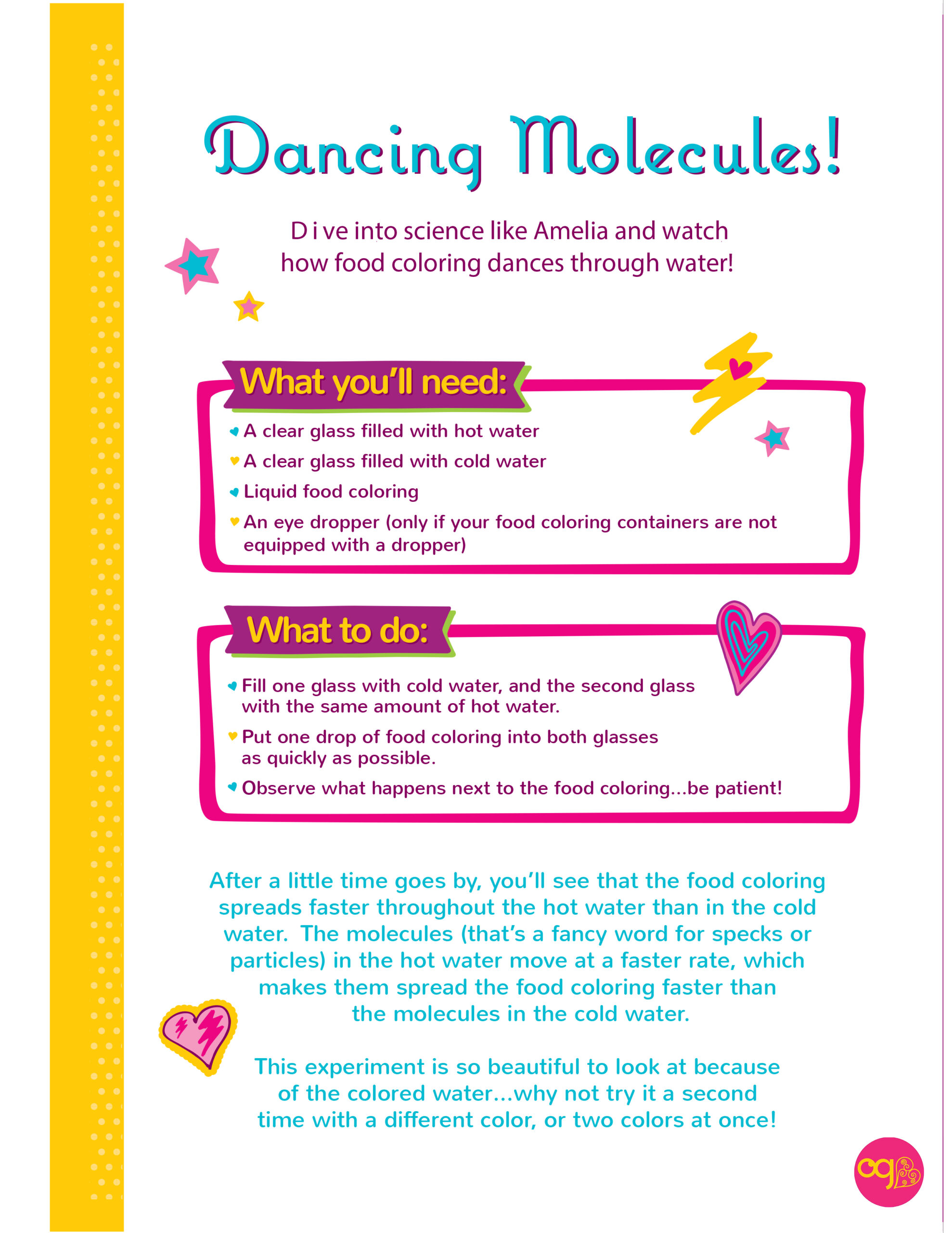 Add fun science to your spring break activities and perform an awesome experiment, courtesy of OG Inventor Amelia. Print out our science activity sheet and learn how food coloring dances through water!
