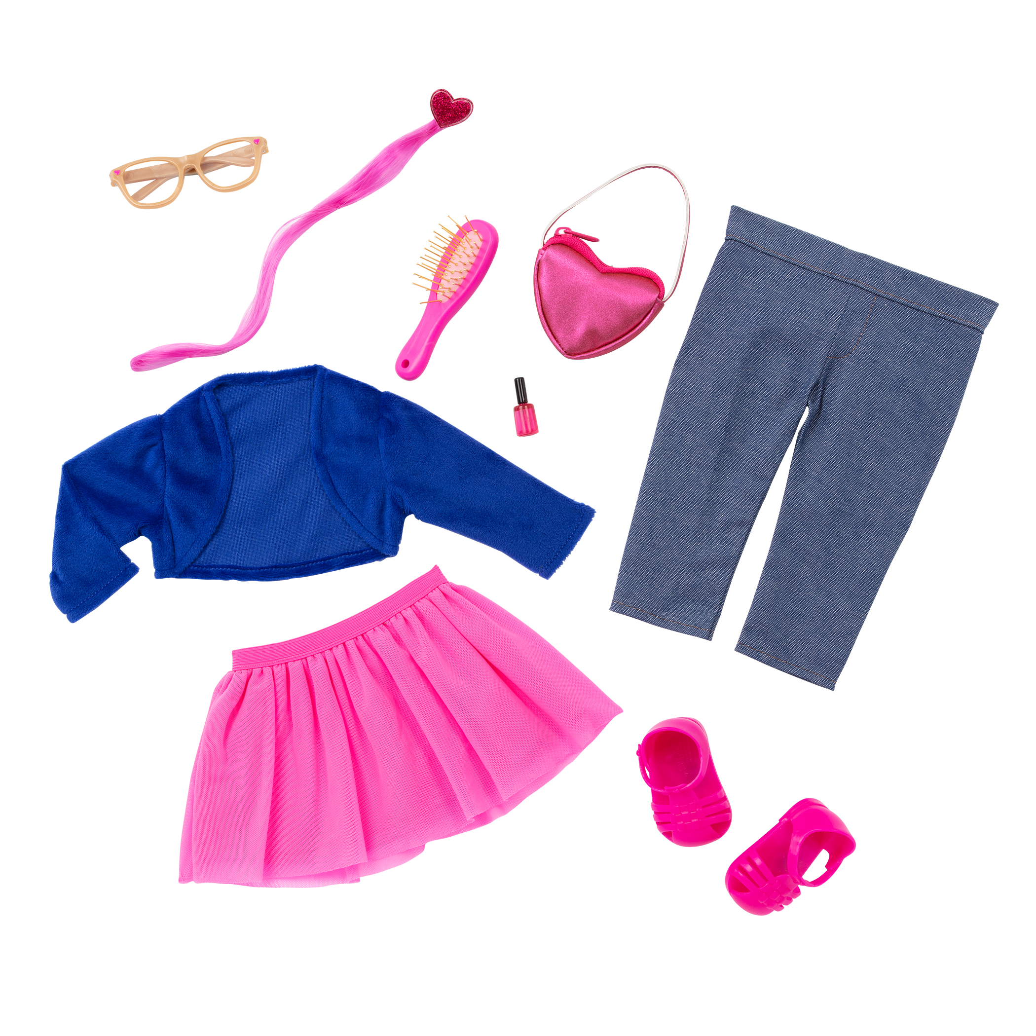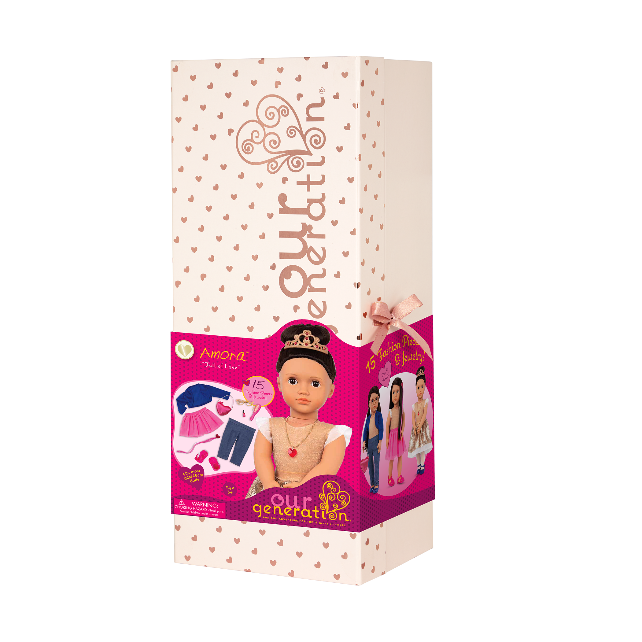 • Heart-Themed Fashion Starter Set: create lovely styles with Our Generation Fashion Starter doll Amora, 3 outfits, and jewelry accessories – she loves showing the world her true colors!