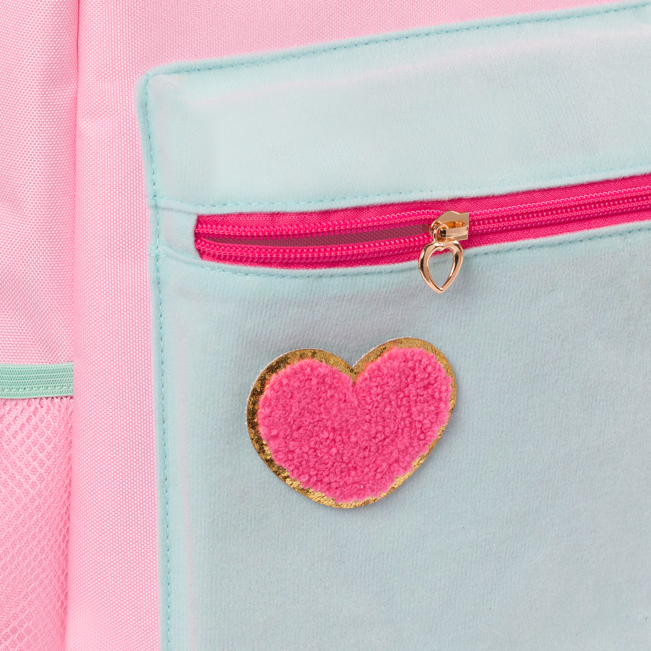 - Express Your Style: This pink and mint green colorblock backpack has 7 colorful stick-on patches for kids who love to decorate and express their personality.