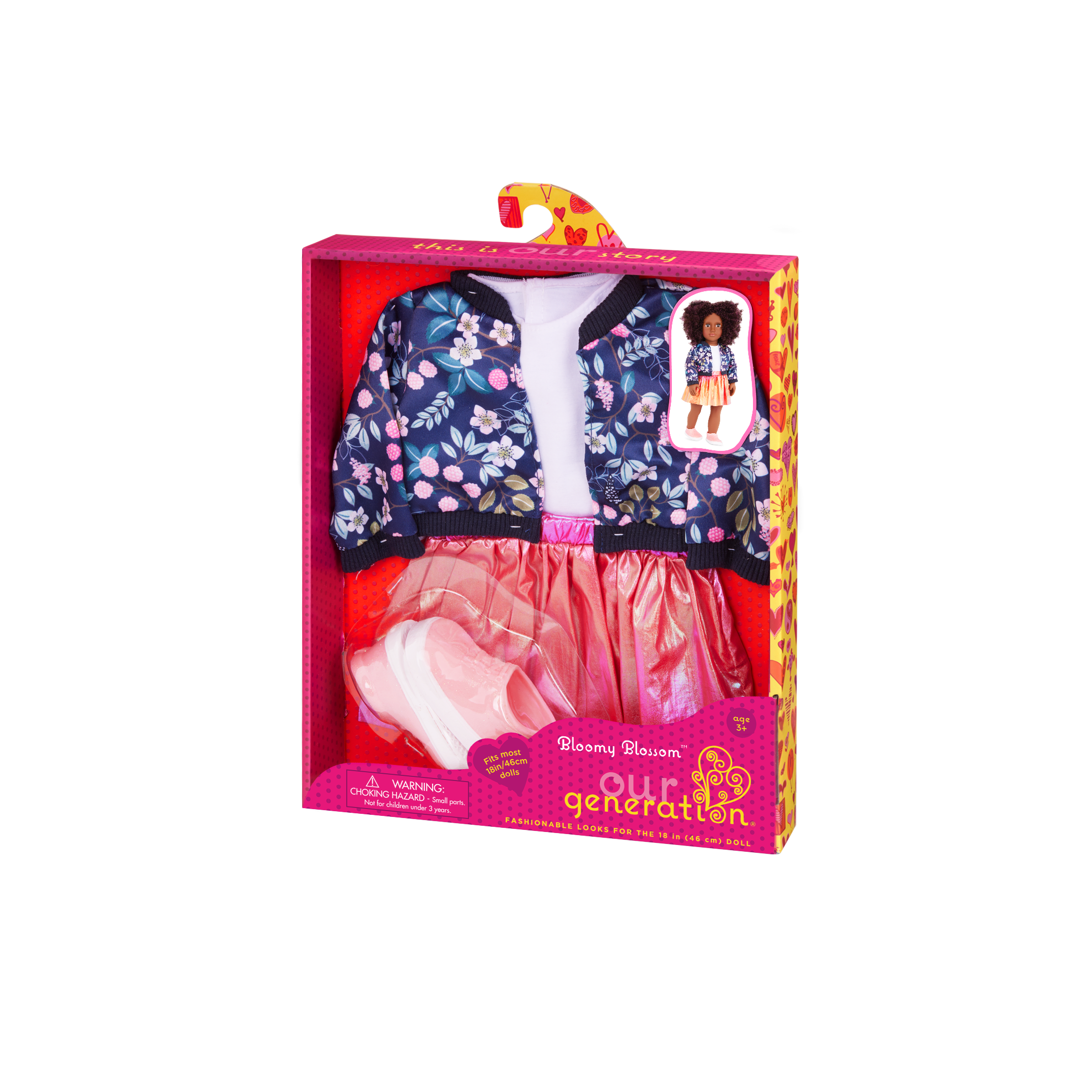 • 18-inch Doll Flower Jacket & Skirt Outfit: Dress up, twirl, and play with the Our Generation Bloomy Blossom outfit for 18-inch dolls!
