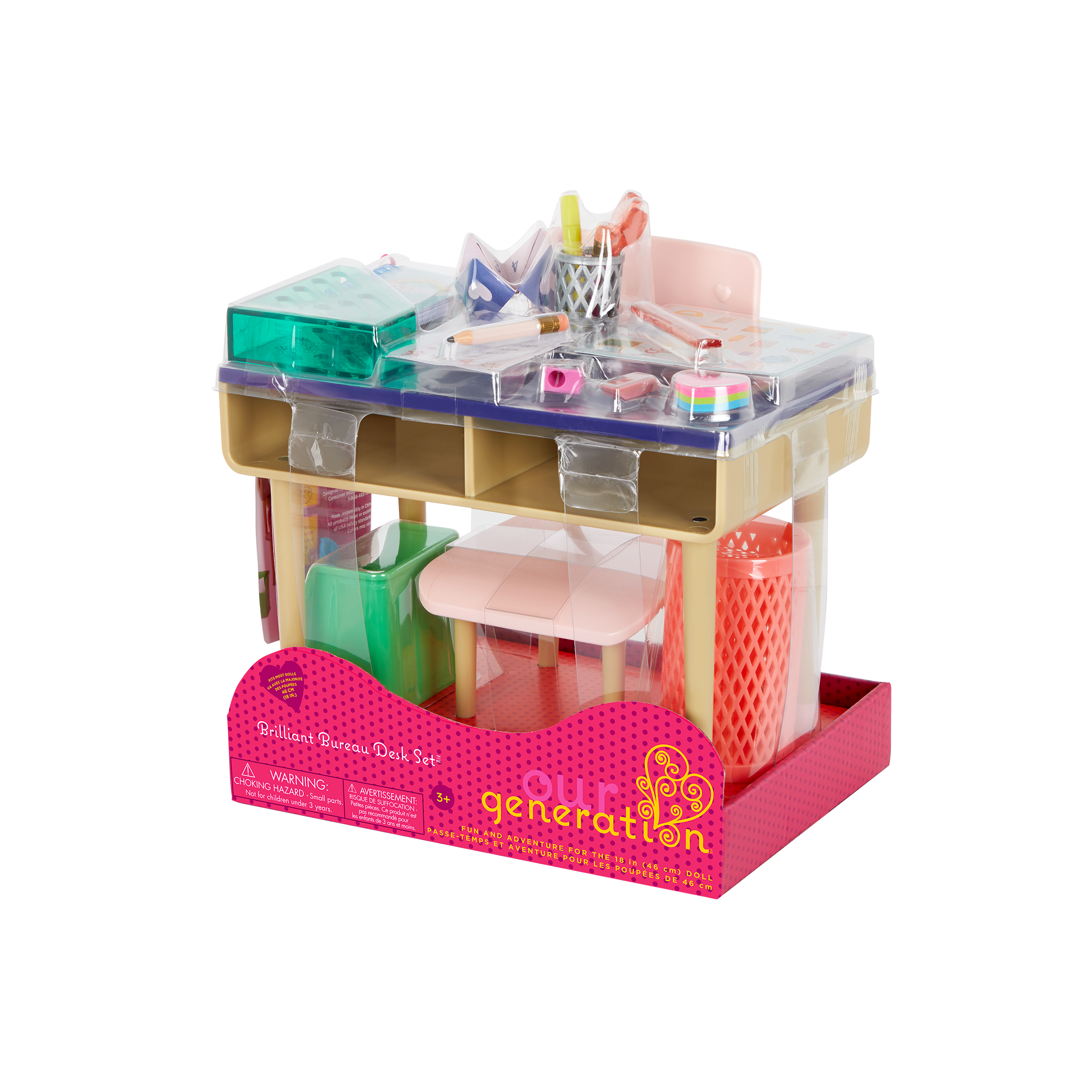 - 18-piece Doll Desk Set: Transform playtime into a creative adventure with the Our Generation Brilliant Bureau set for 18-inch dolls!