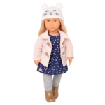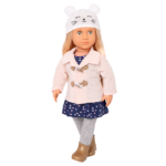Step out in style with the Cheerfully Chilly outfit from Our Generation! This 18-inch doll ensemble includes a dress with colorful heart prints, a pair of cozy leggings, and a stylish, pink duffle coat. You can even fasten the clips on the coat to keep your dolls bundled up on windy days! It also features super cute booties and a delighted kitty hat to keep your dolls comfy during their travels. The easy-open closures make it quick to put on and remove, and you can mix and match this outfit with other Our Generation outfits for more styles. Creative fashion is always in season! (Dolls sold separately.)