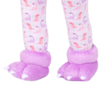 - Includes: pajama top & bottom with fun dinosaur prints, super soft dinosaur stuffed animal, and comfy dinosaur-feet slippers.