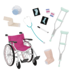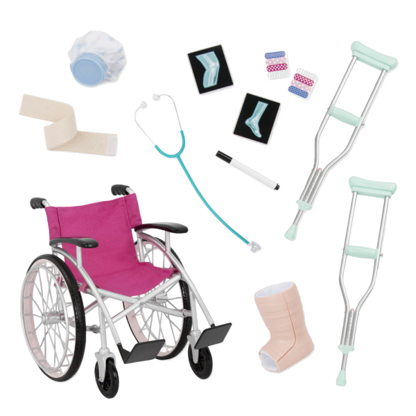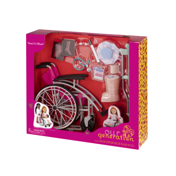 • 18-inch Doll Wheelchair Set: care for your 18-inch dolls and help them roll toward recovery with the Our Generation Heals on Wheels set!