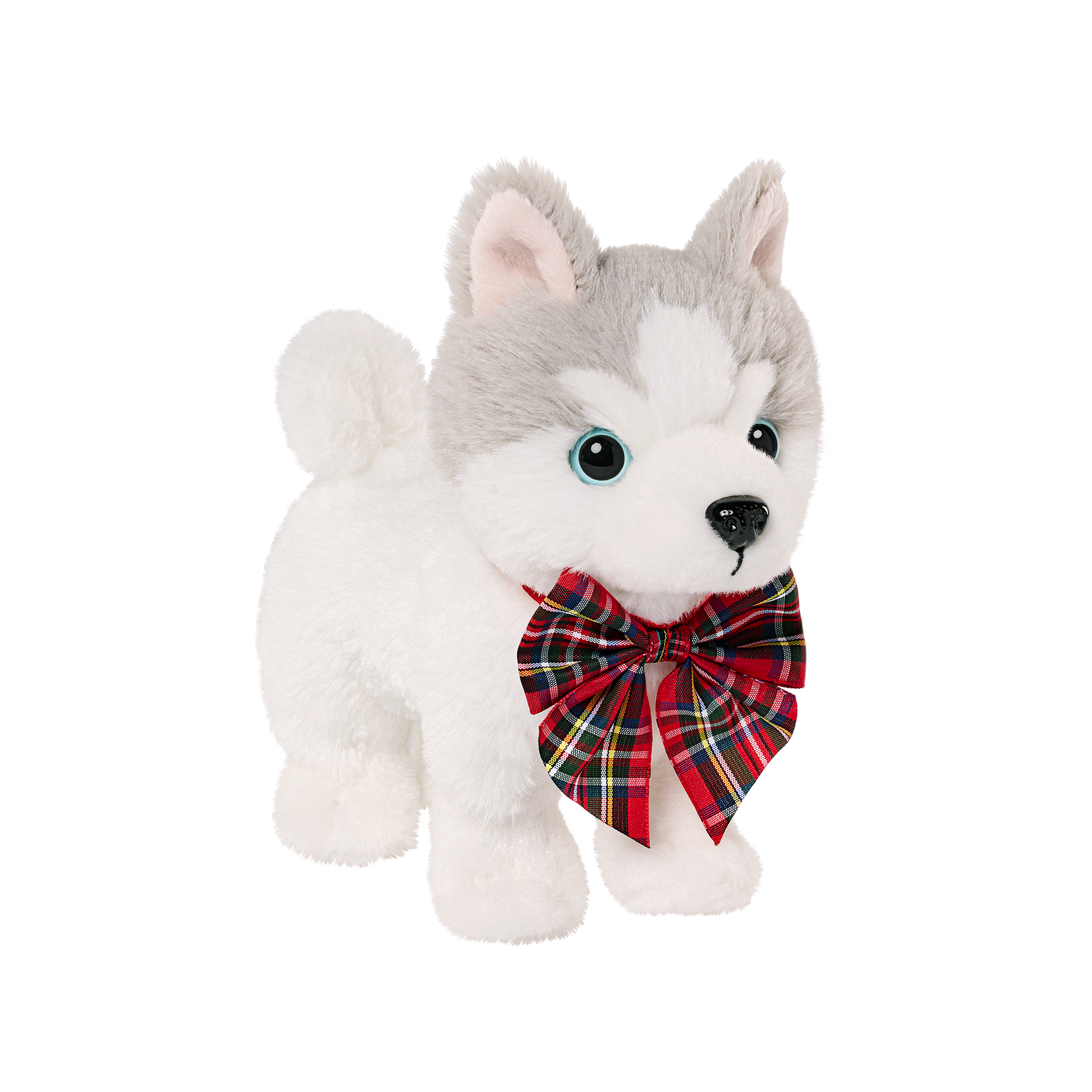 - Festive Features: This holiday Husky has snuggly soft plush fur, icy-blue eyes, and a removable tartan-style bow collar so kids can explore imagination all year round!