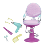 - 18-inch Doll Salon Chair Set: exciting new hairstyles are at your fingertips with the Our Generation Sitting Pretty Salon Chair for 18-inch dolls!