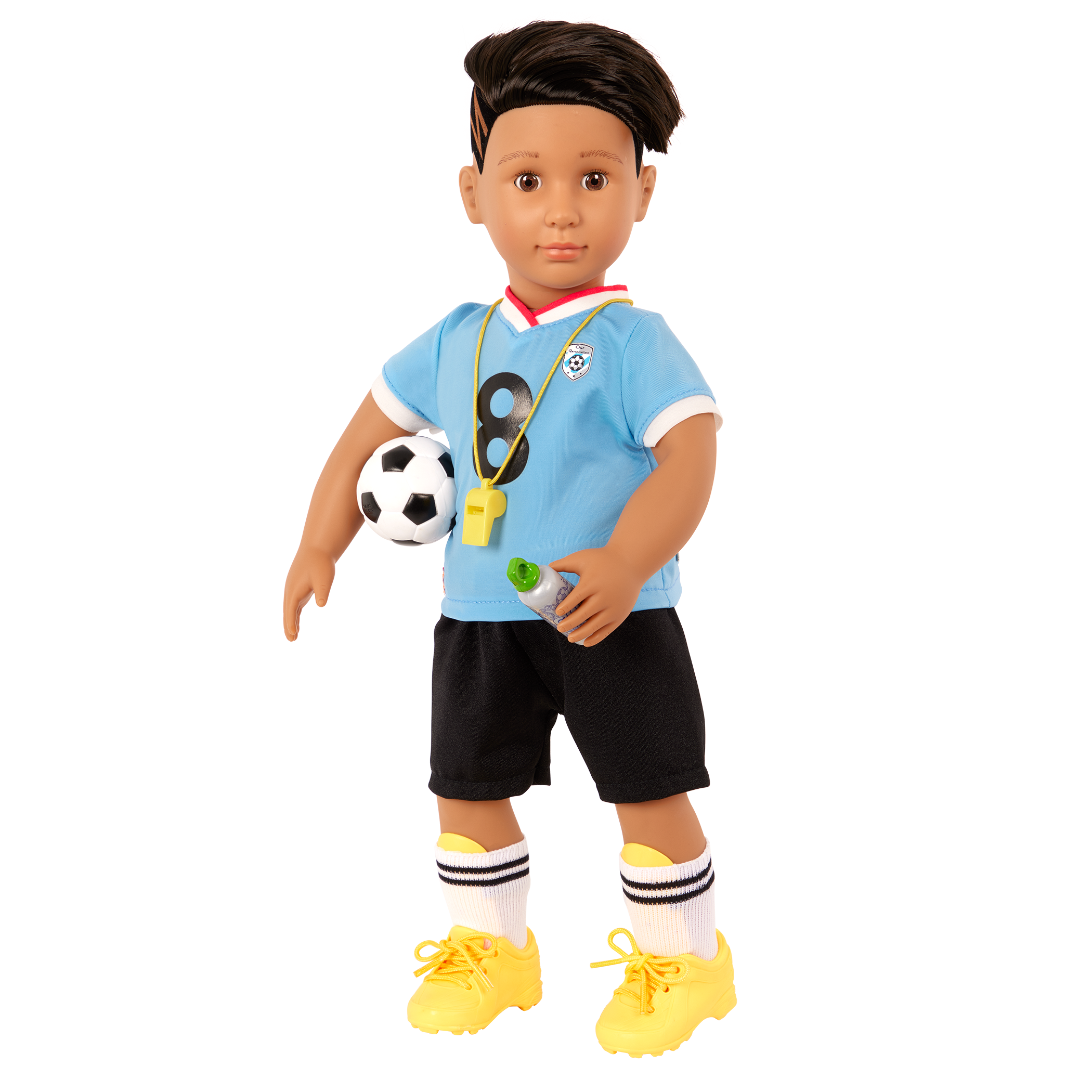 - 18-inch Soccer Doll: Celebrate the beautiful game and kick off sporty fun with Our Generation 18-inch boy doll Mateo!