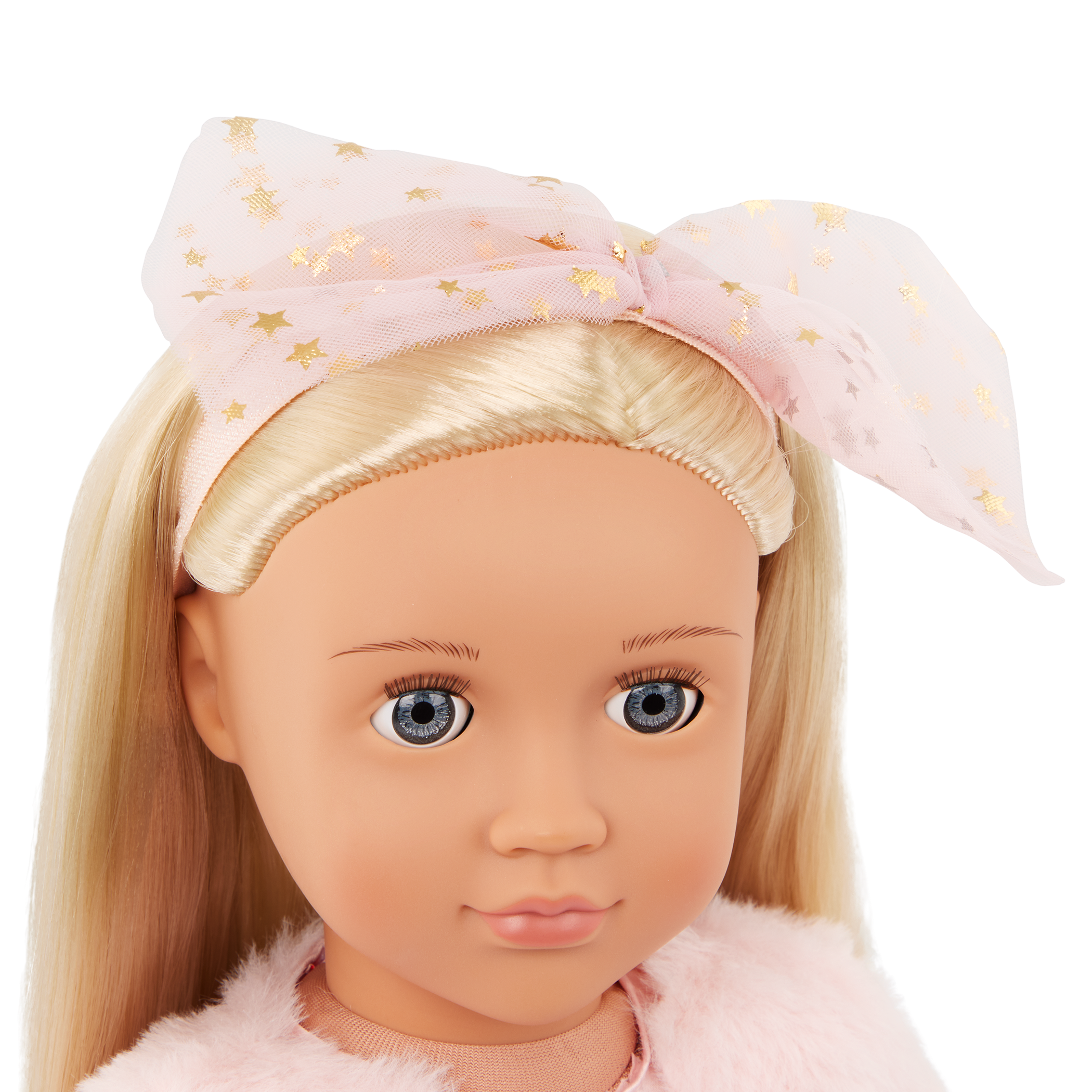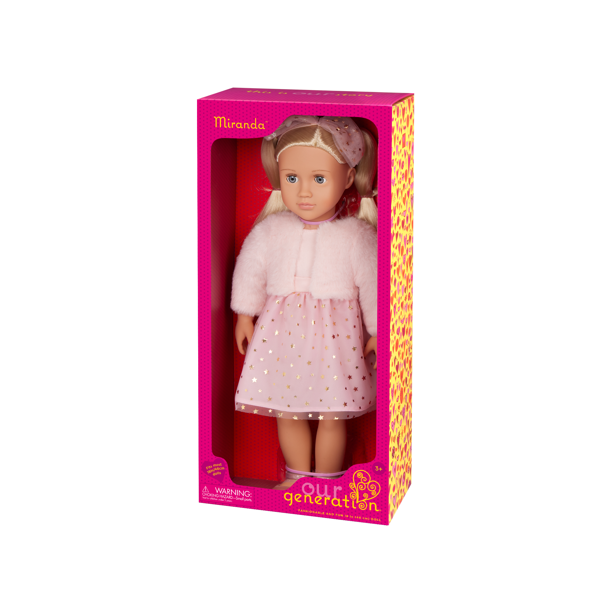 - 18-inch Fashion Doll: Our Generation 18-inch doll Miranda shines in pretty pink fashion from bow to toe!
