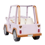 - Realistic Details: movable steering wheel, rolling wheels, and opening doors to comfortably seat two 18-inch dolls!
