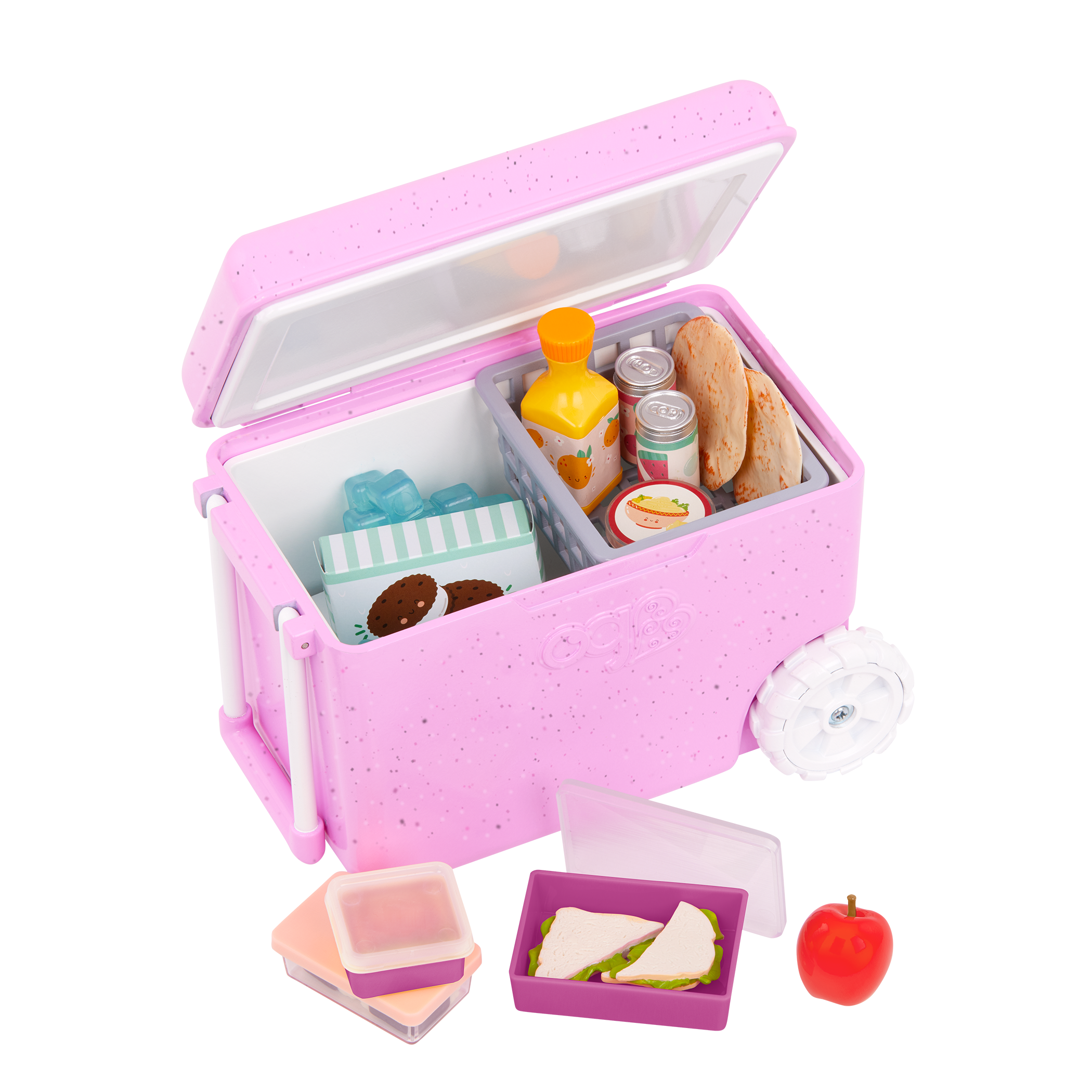 - 18-inch Doll Cooler Set: Unpack delicious fun in fabulous style with the Our Generation Camping Cooler set for 18-inch dolls!