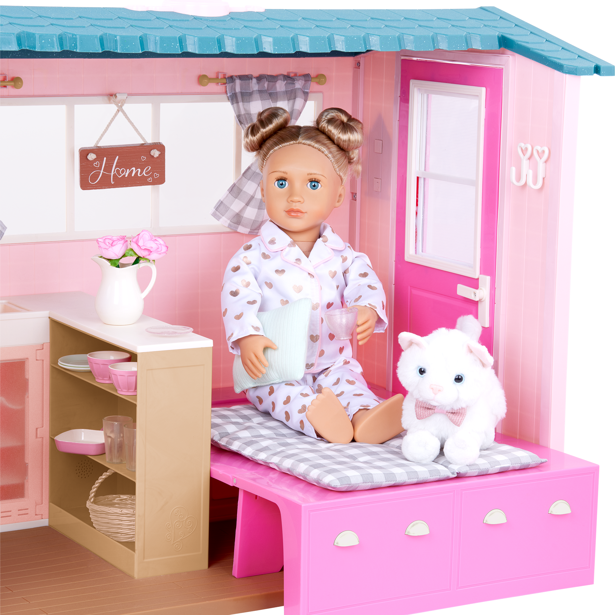 - Animal Sounds & Cute Details: Kids can press the buttons to hear a kitten and rooster sound. Plus, the house is designed with an opening door, a fold-out bed, and detailed decor to welcome dolls into the perfect getaway home.