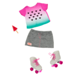 • 18-inch Doll Roller Skate Outfit: Roll into sweet style and fun adventures with the Our Generation One in a Melon outfit for 18-inch dolls!