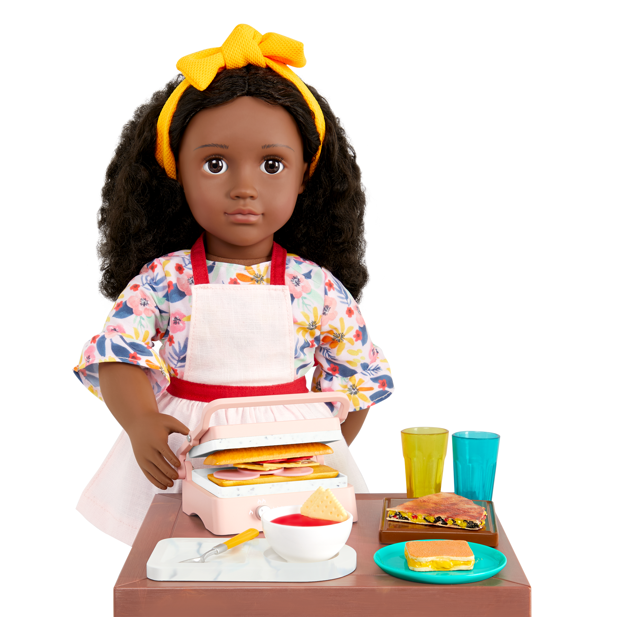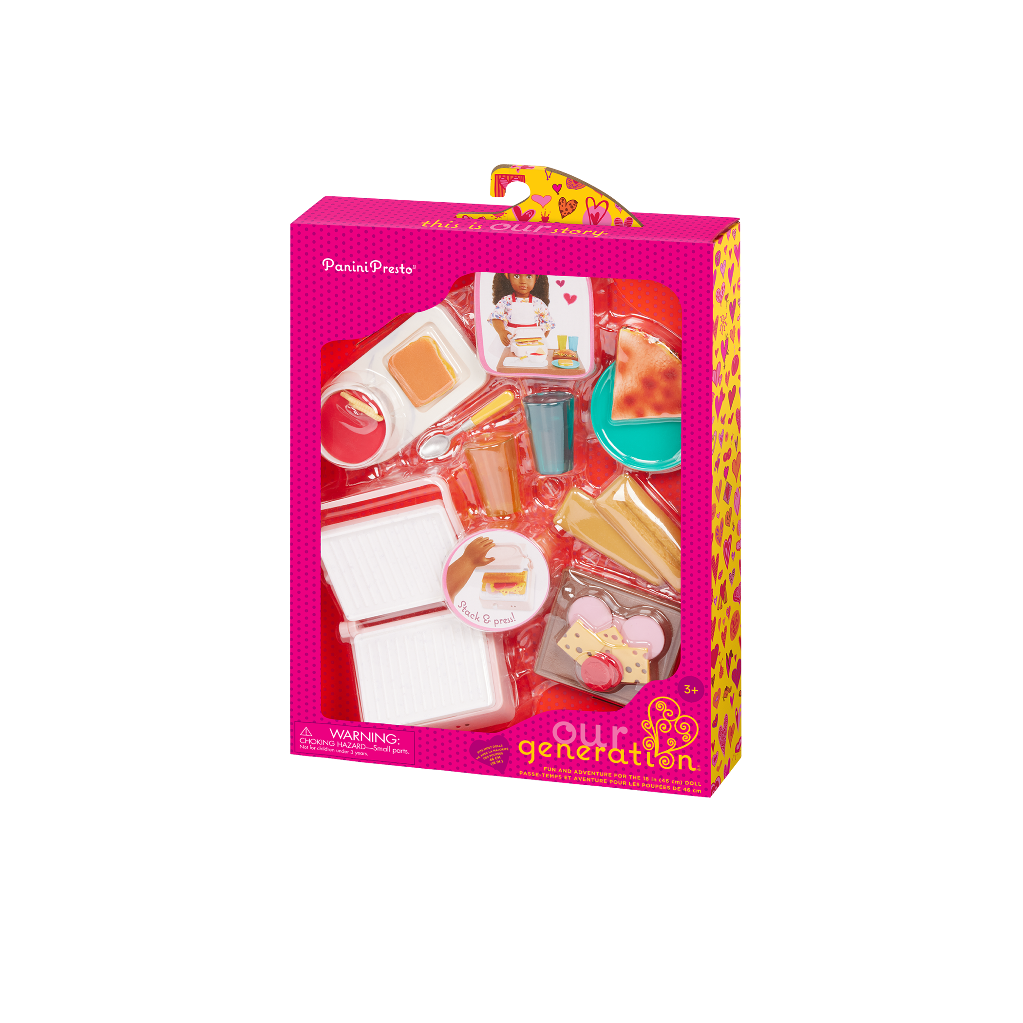 - 15-piece Play Food Set: stack, press, and enjoy food-making fun with the Our Generation Panini Presto set for 18-inch dolls!