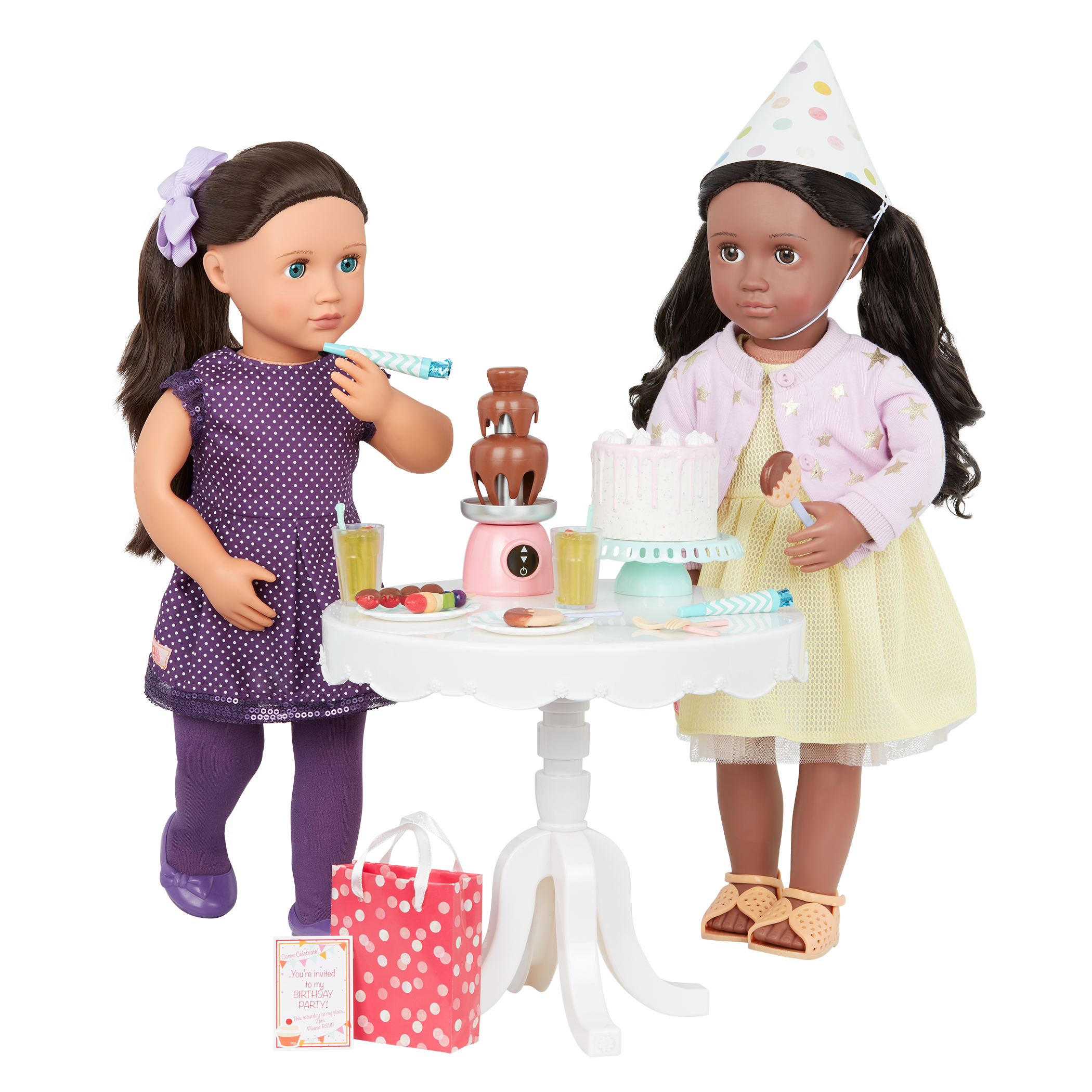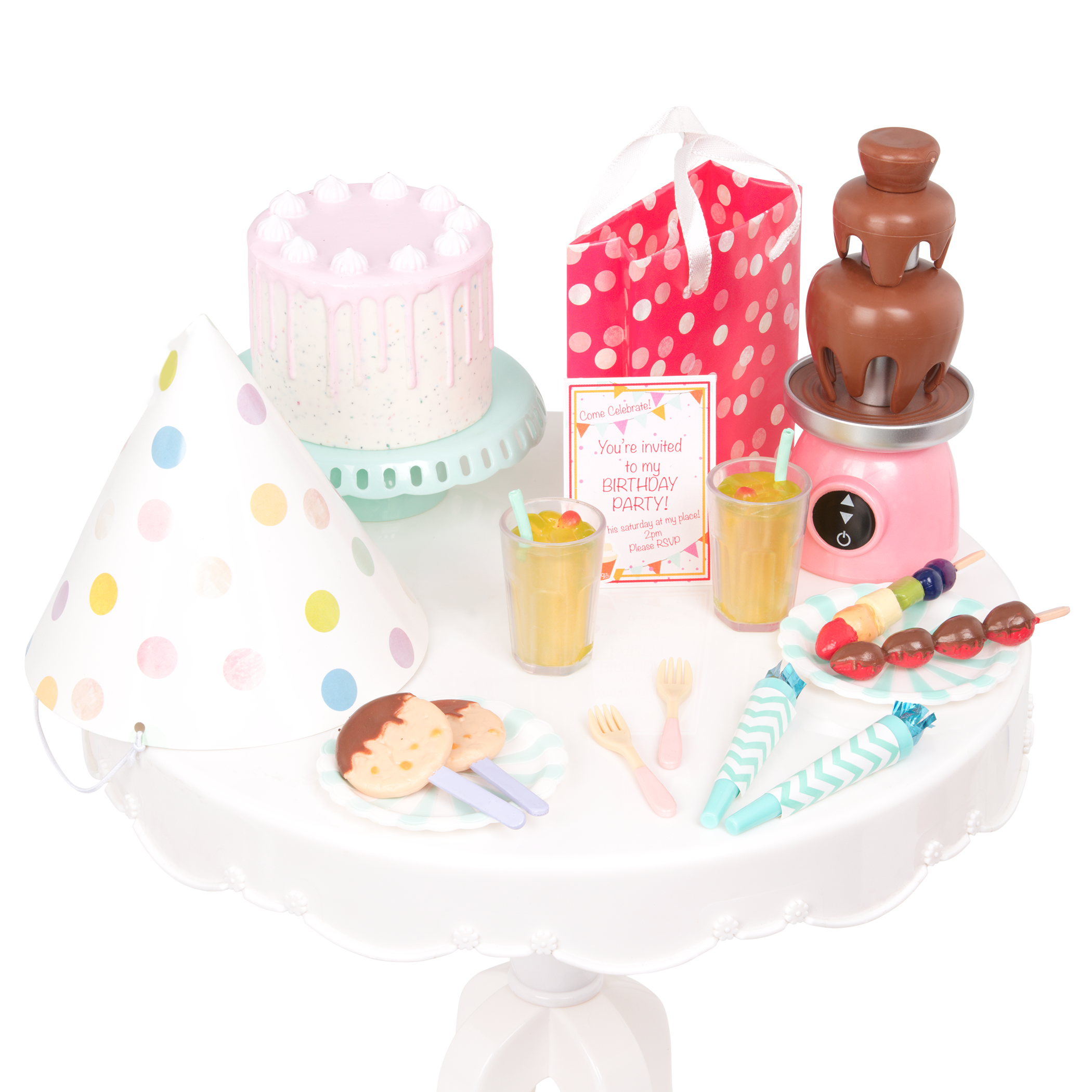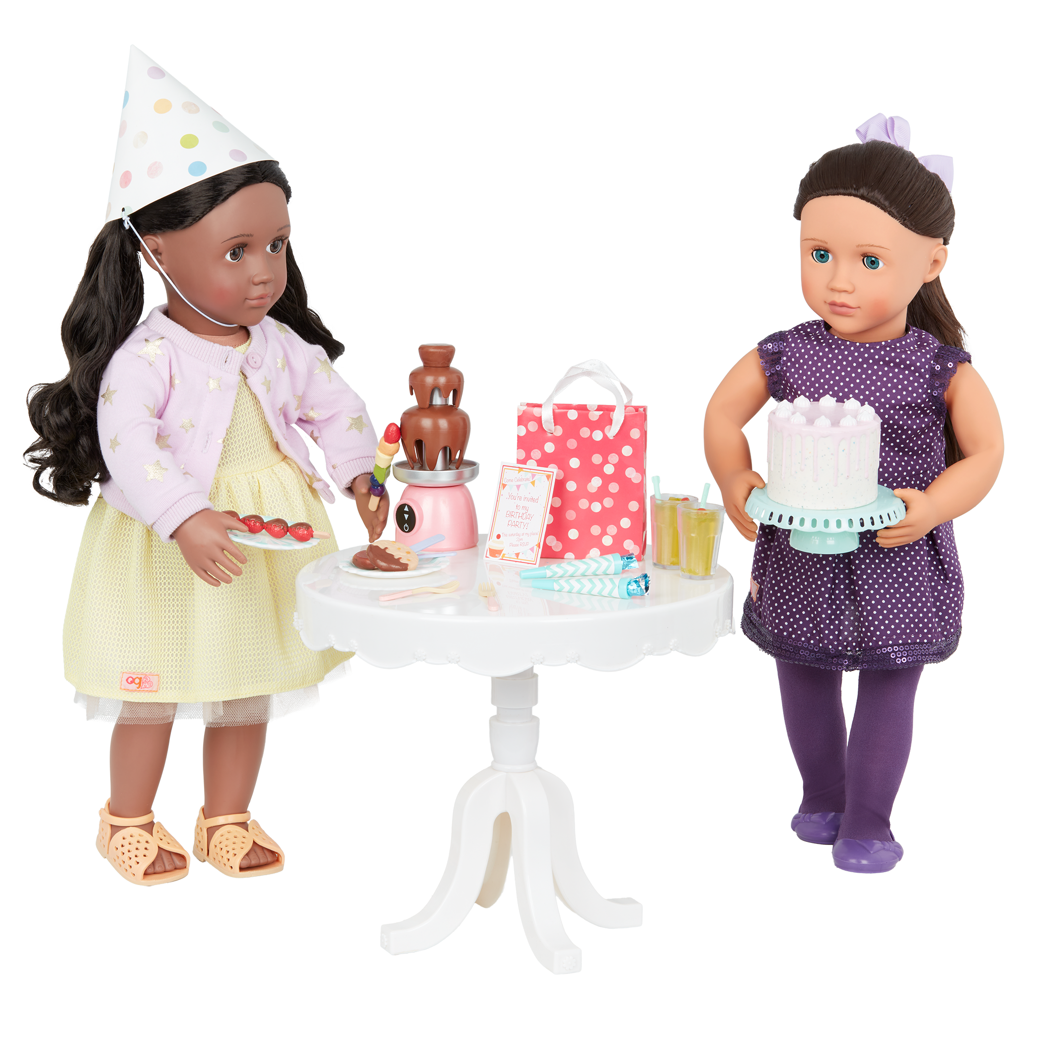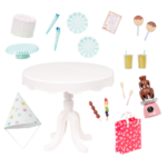 • 18-inch Doll Birthday Table Set: Host birthdays and fun celebrations with the Our Generation Party Time accessory set for 18-inch dolls!