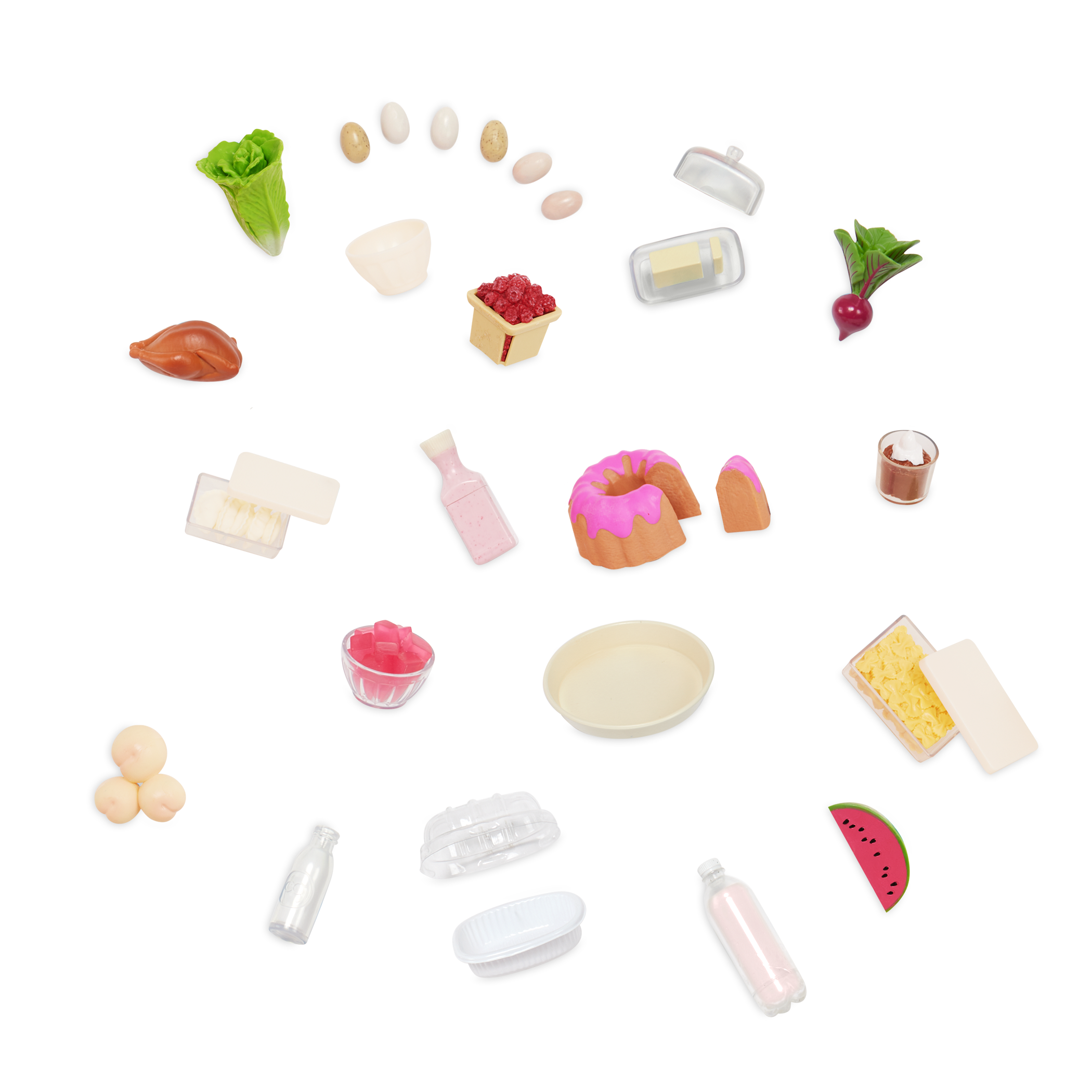 - 33-pc Mini Fridge Playset: open the door to foodie fun with the Our Generation Perfectly Fresh mini fridge set for 18-inch dolls!