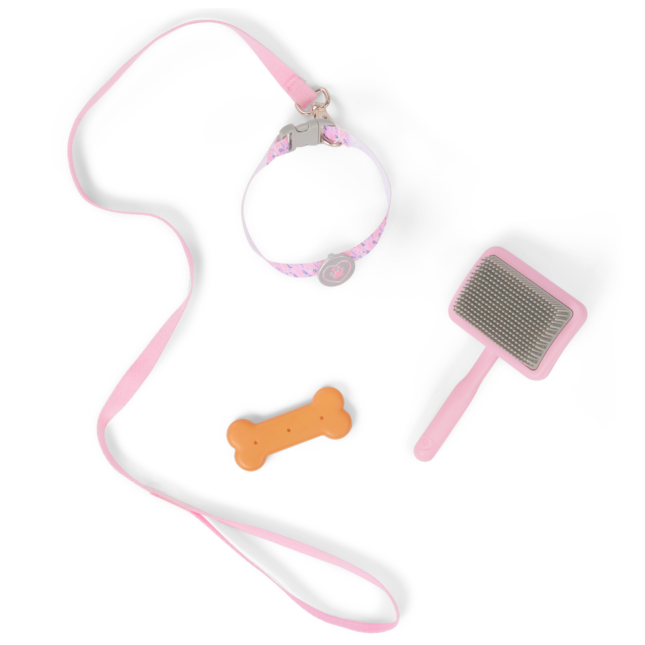 - Includes: An electronic pet toy puppy, a collar, a dog leash, a magnetic treat, and a grooming brush to care for puppy’s soft plush fur.