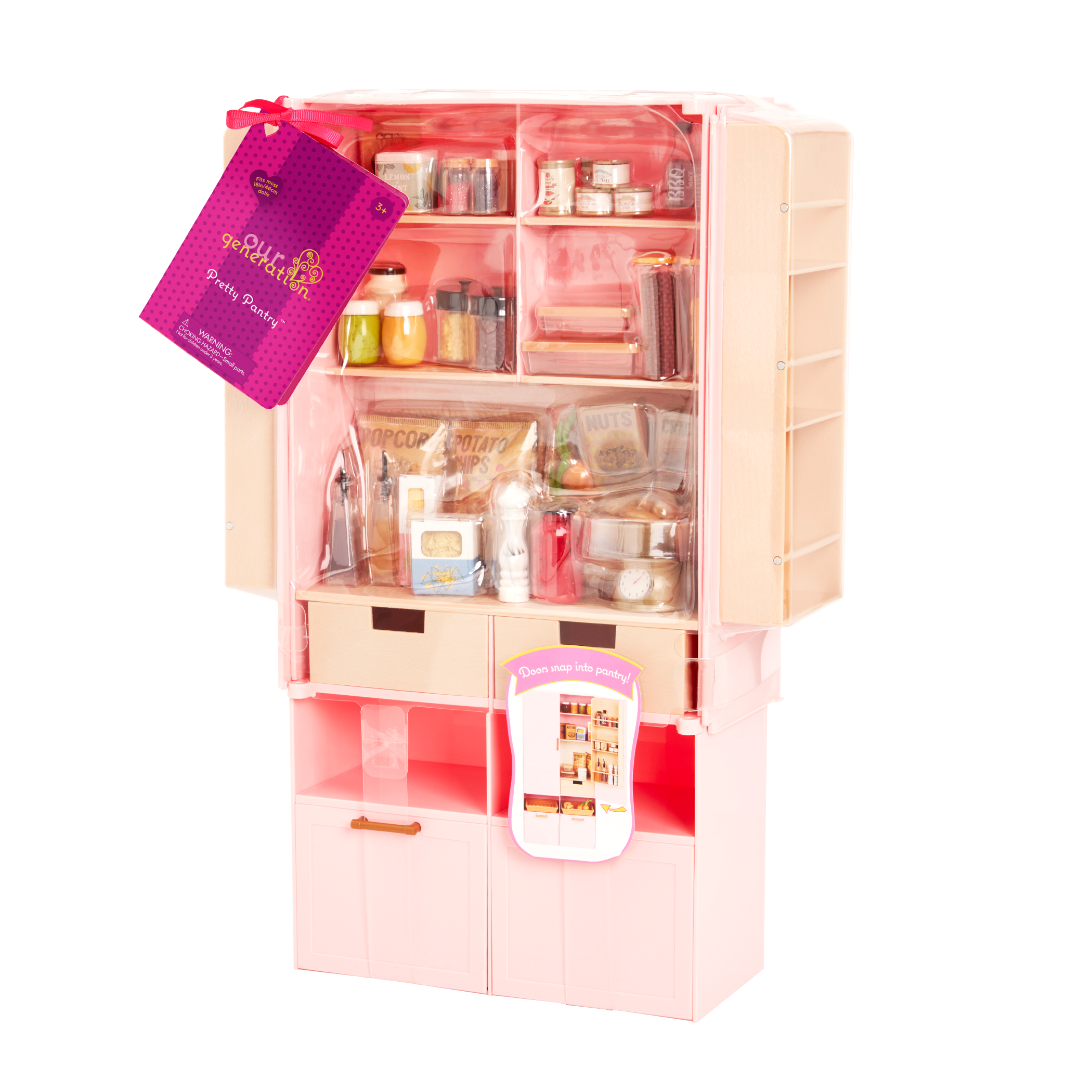 - 51-pc Kitchen Pantry Set: Open the door to foodie fun with the Our Generation Pretty Pantry set for 18-inch dolls!