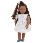 - Includes: doll, floral dress, a pair of undies, 2 hair extensions, 3 bobby pins, comb, a pair of shoes, and a style booklet.
