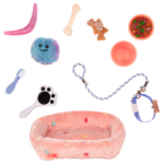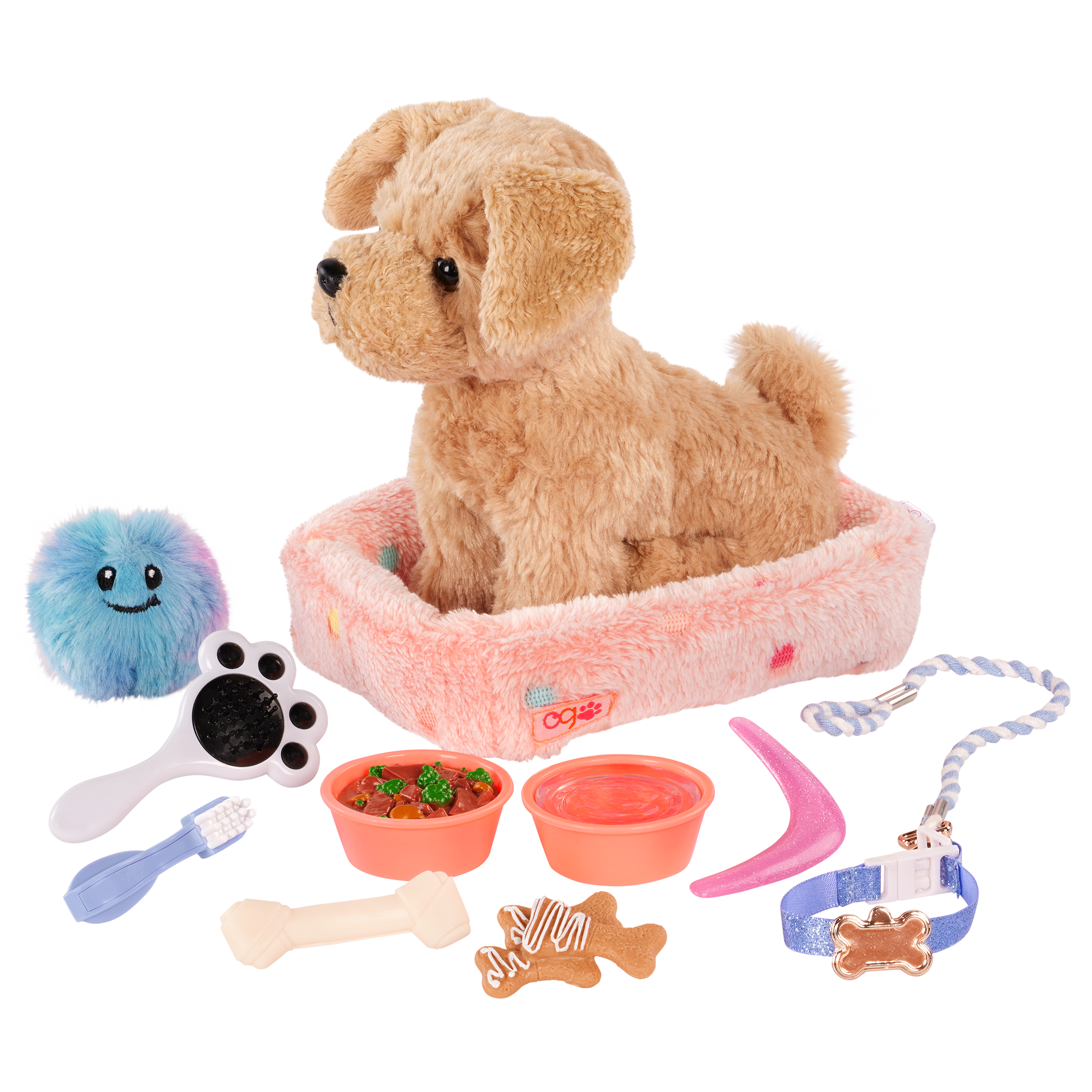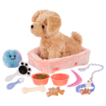 - Plush Pet Bed & Care Set: Unleash pet-tastic adventures with the Our Generation Puppy Care & Play set for 18-inch dolls!