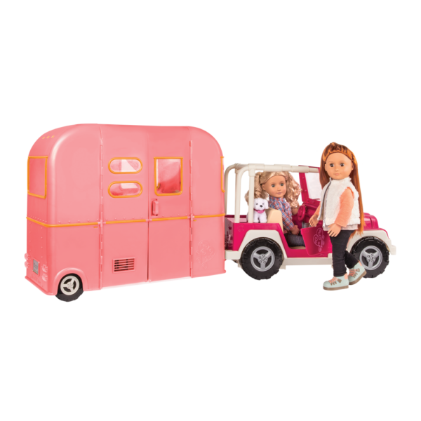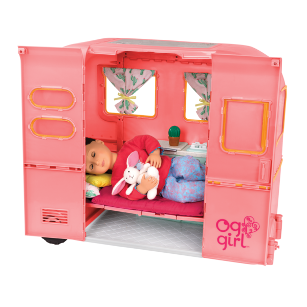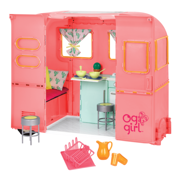 - 28-pc Pink RV Camper: get ready for fun and adventure on the open road with the Our Generation R.V. Seeing You Camper for 18-inch dolls!