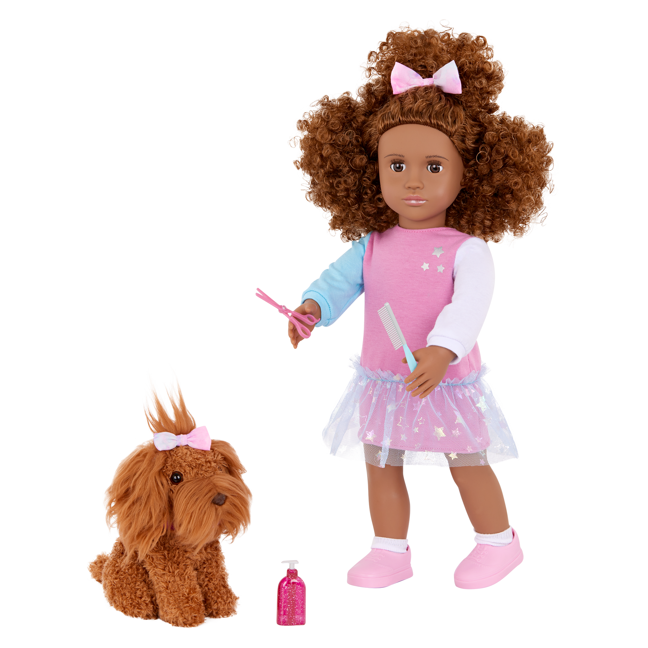 - 18-inch Doll & Pet Set: It’s double the styles, double the glam with Our Generation doll Safie and her pet puppy Ginger!