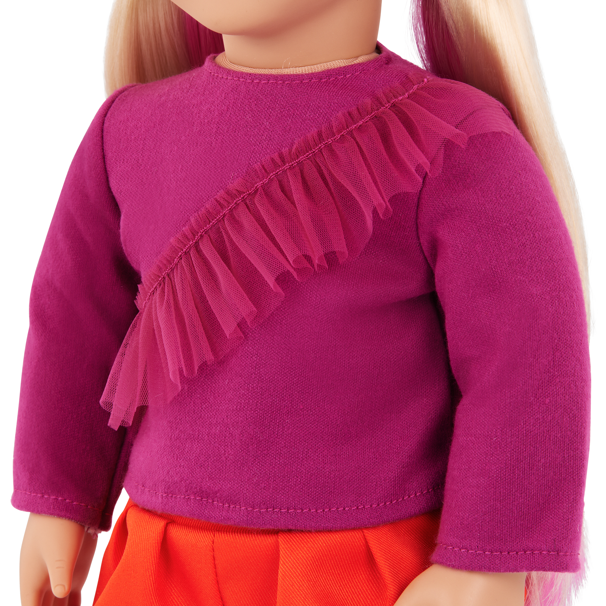 18" Fashion Doll in Fuchsia & Orange Color Block Outfit