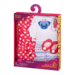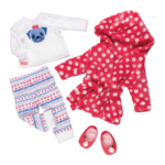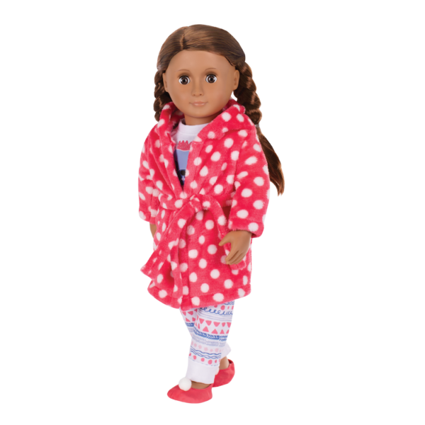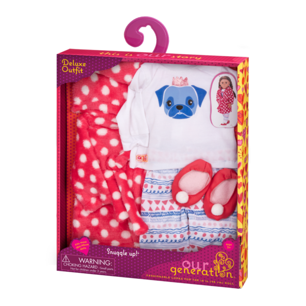 - 18-inch Doll Pajama & Bathrobe Outfit: dolls who love puppies will sleep better with bedtime pugs and kisses in the Our Generation Snuggle Up outfit!