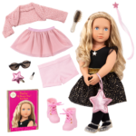 • Star-Themed Fashion Starter Set: create stellar styles in lots of star power with Our Generation Fashion Starter doll Stella, 3 outfits, and jewelry accessories!