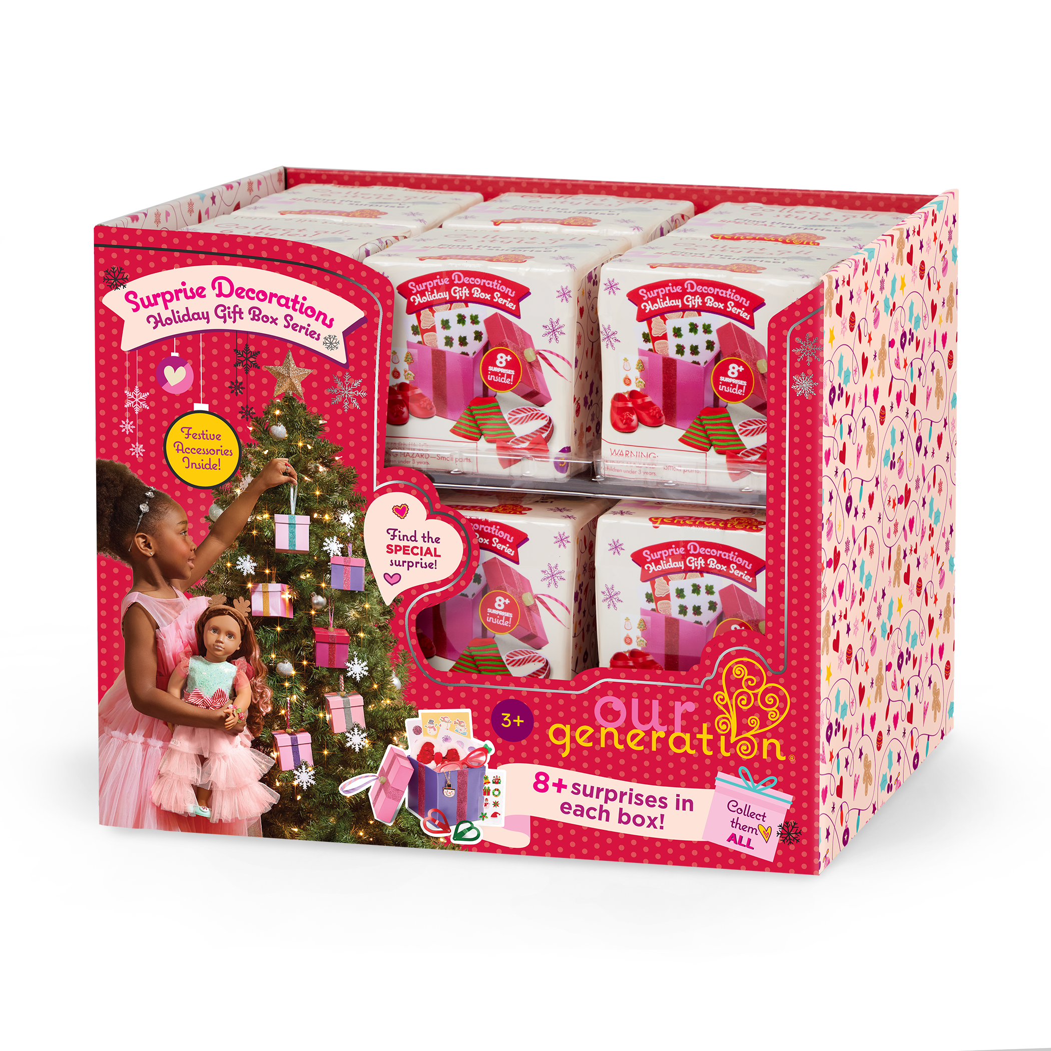 - Holiday Mystery Box: Unwrap, unbox, and reveal festive accessories with Our Generation Surprise Decorations – Holiday Gift Box Series!