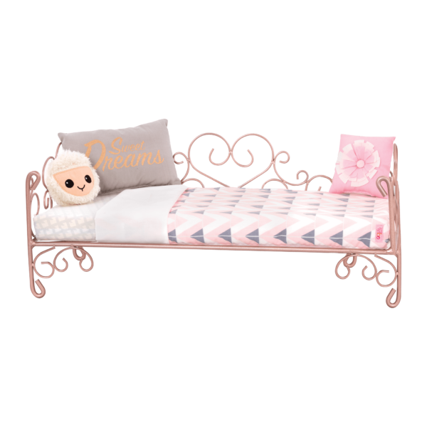 - 18-inch Doll Scrollwork Bed: give your doll a fancy bedroom makeover with the Our Generation Sweet Dreams scrollwork bed!
