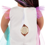• Includes: 18-inch doll, cute dress with rainbow tulle, a pair of undies, casual shoes, a comb, 2 colorful hair extensions, 2 heart-shaped hair clips, and a step-by-step hair style guide to create 4 beautiful looks.