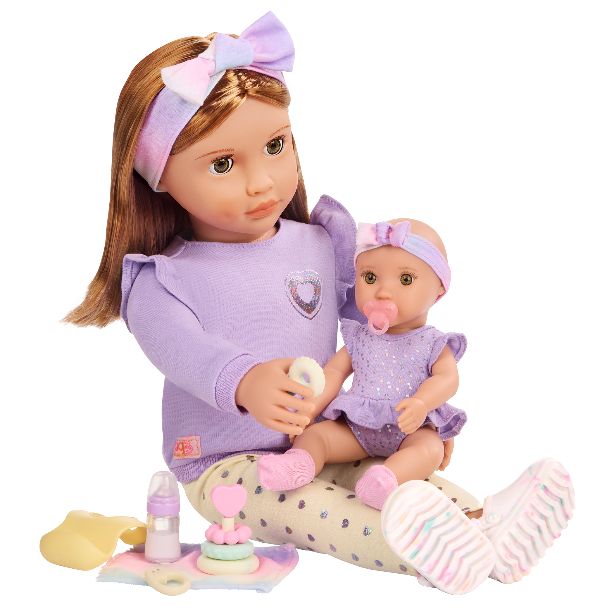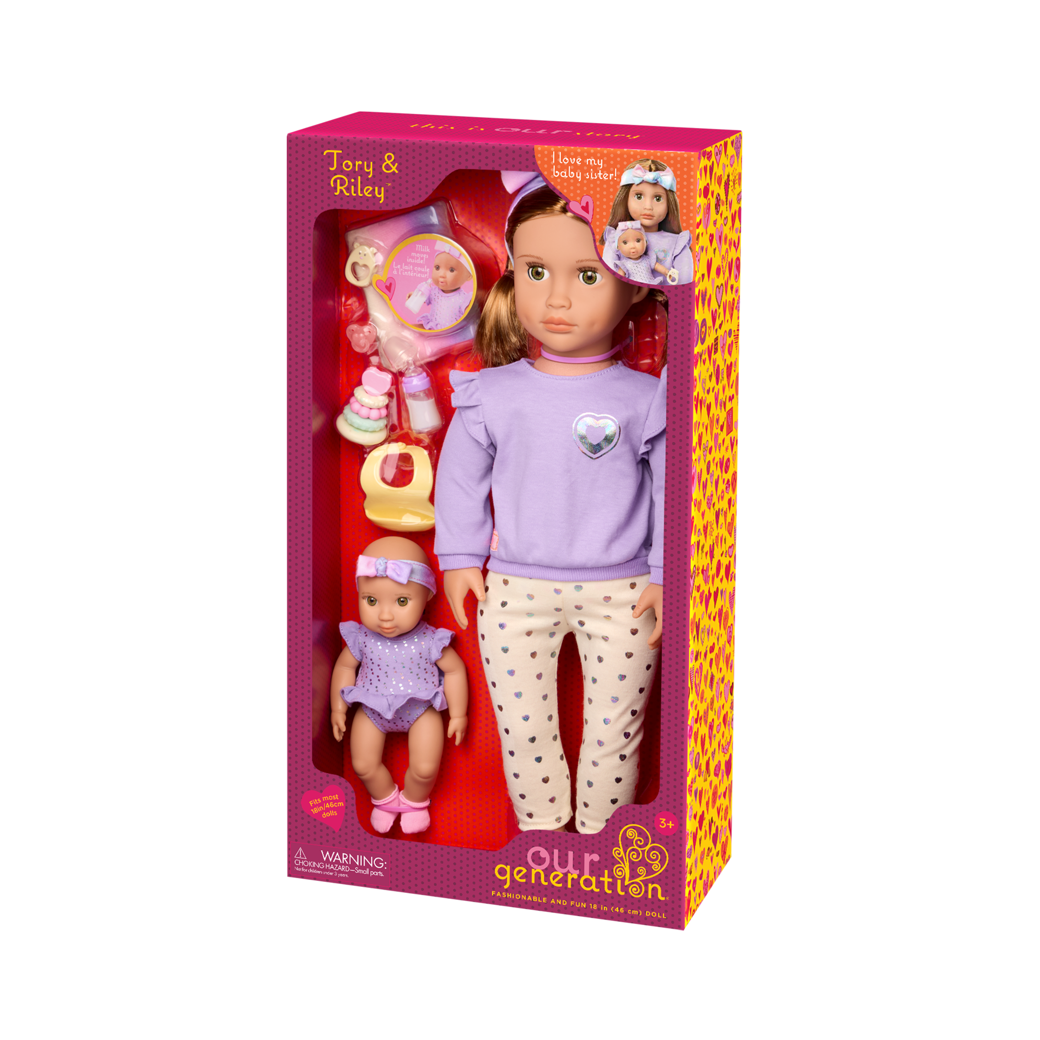 • Babysitter & Baby Doll Set: Take on the role of best babysitter ever with Our Generation 18-inch doll Tory and her baby sister Riley!
