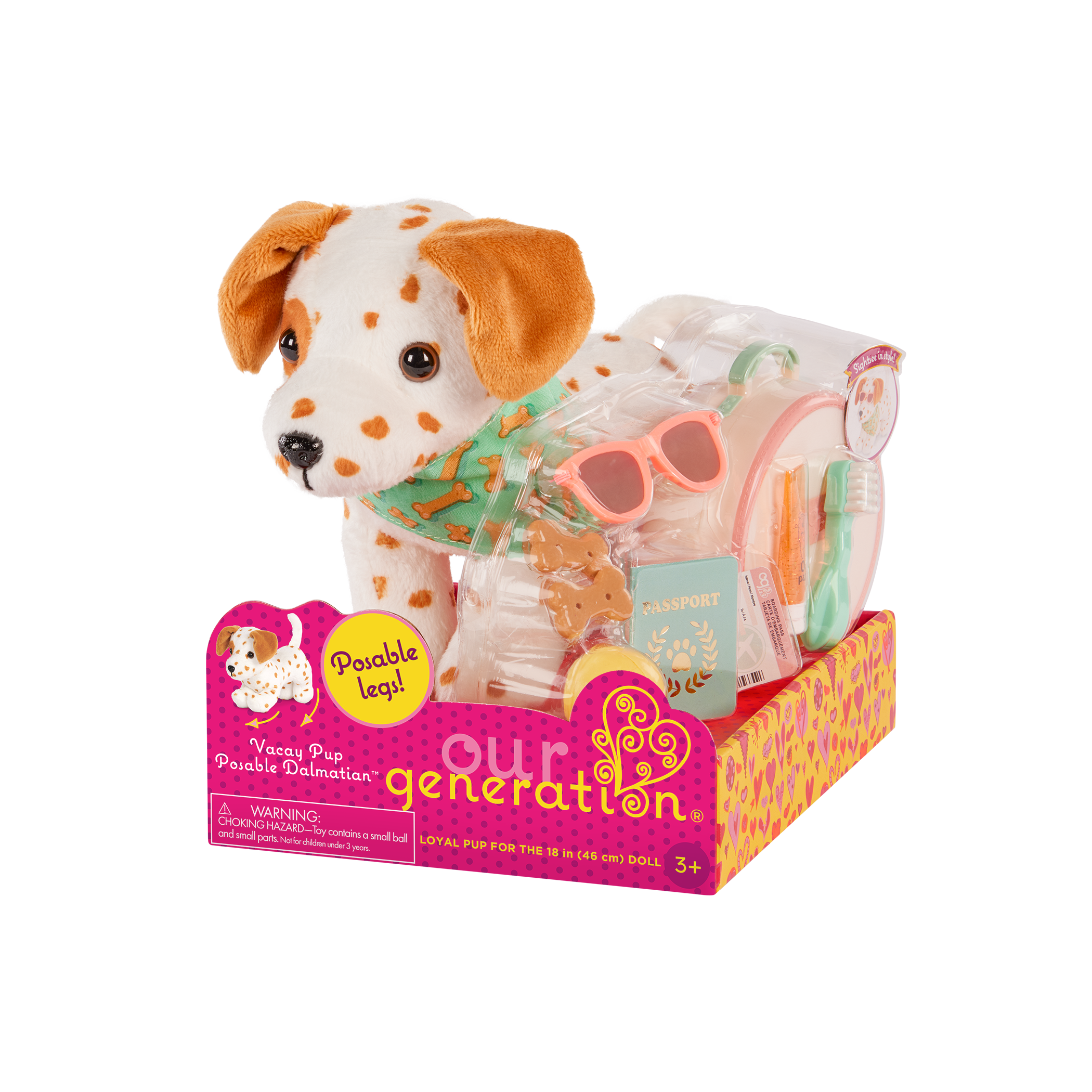 - 6-inch Pet Dalmatian Dog Plush: Explore the world and create happy tails with the Our Generation Vacay Pup for 18-inch dolls!