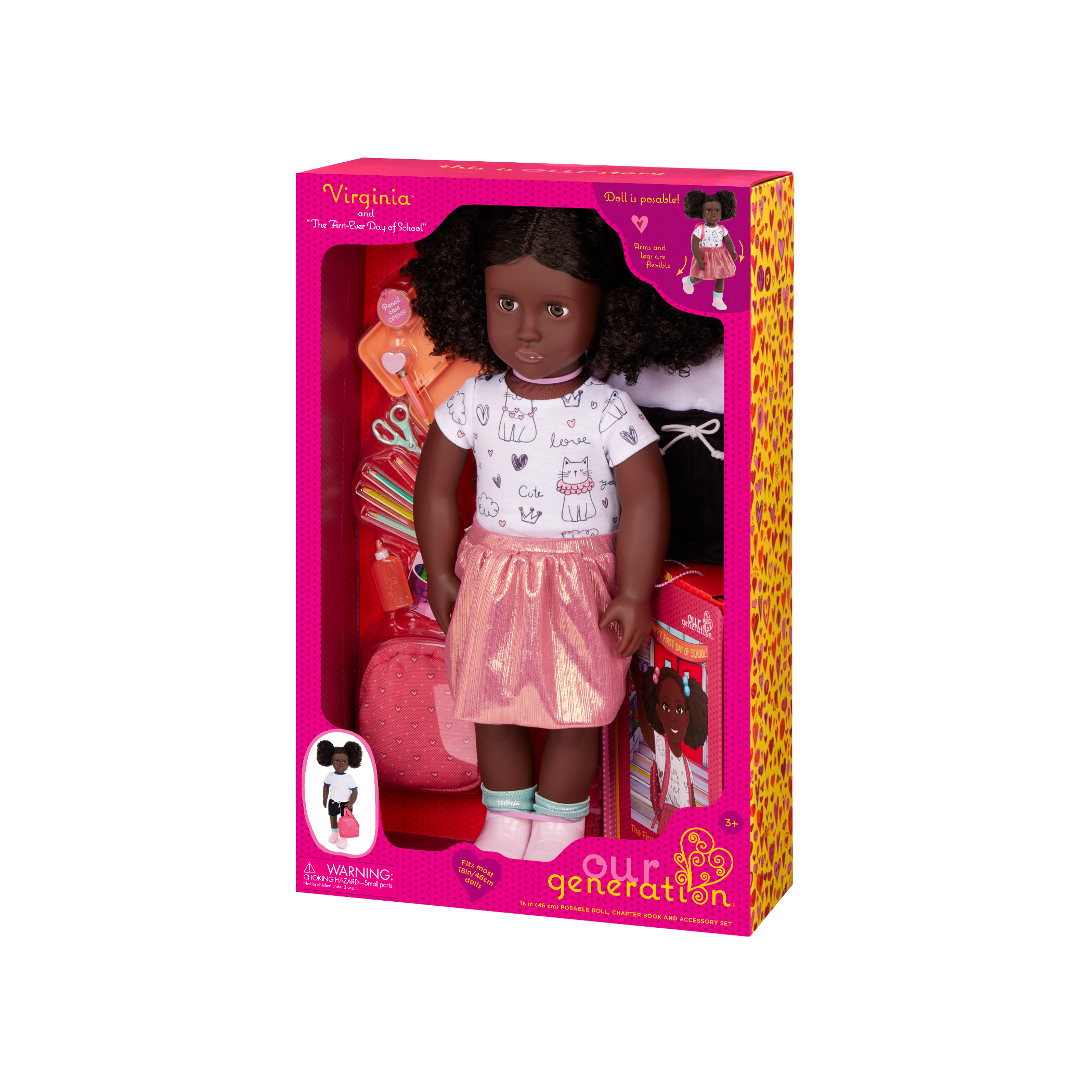 • 18-inch Doll & Book Set: Discover school-day adventures and story-filled fun with Our Generation 18-inch doll Virginia!