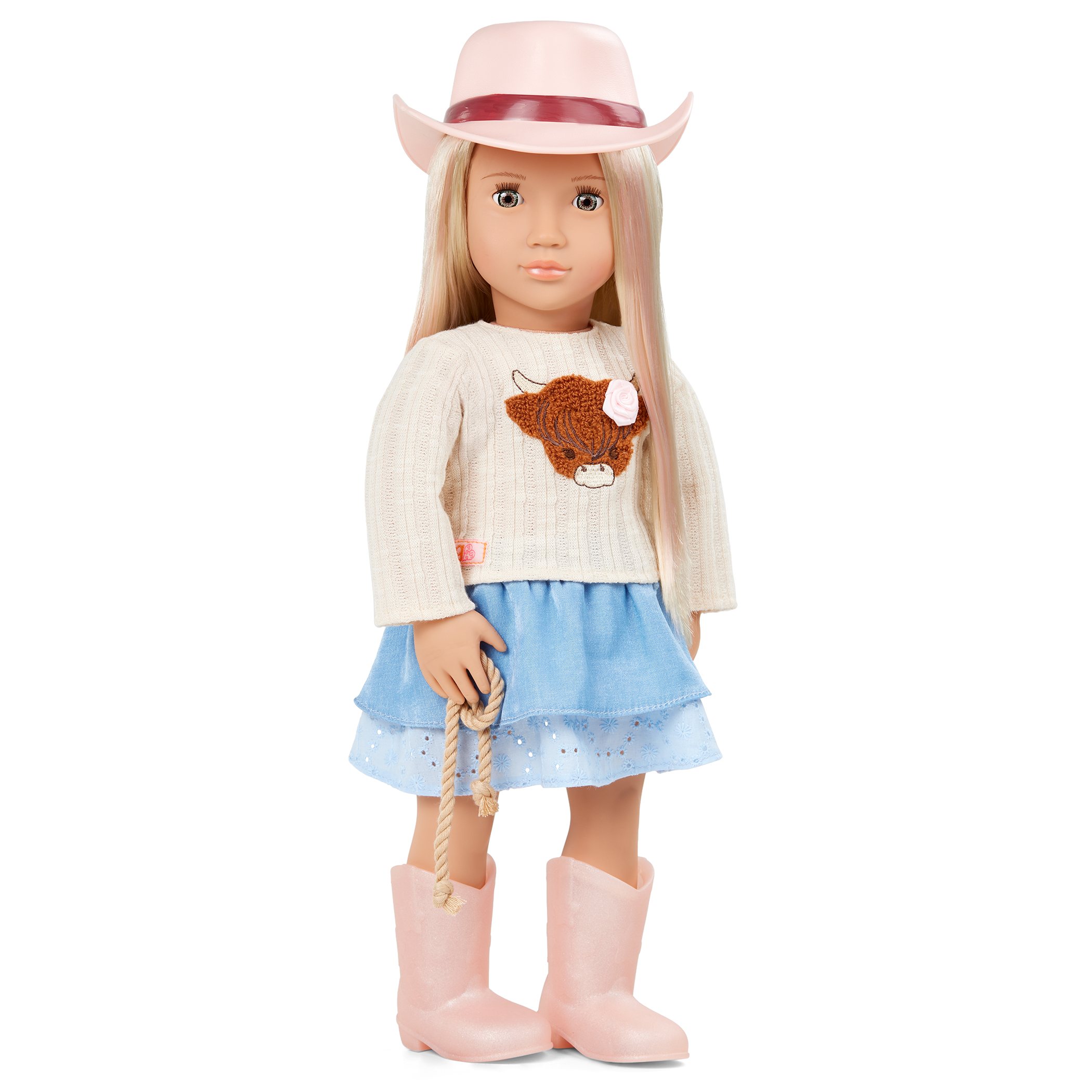 • Child-Friendly Design: Includes a graphic sweater with a cute highland cow print, a ruffled skirt, toy rope, a pink cowboy hat, and matching cowboy boots.
